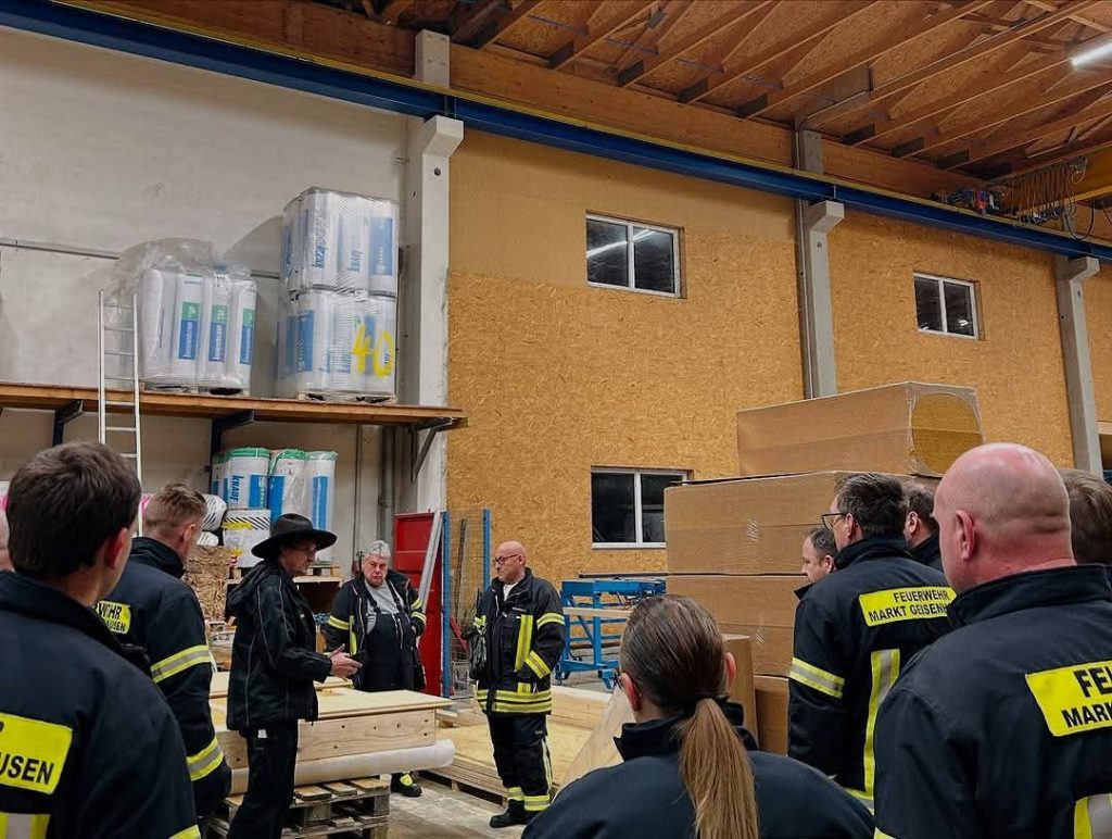 Im Rahmen der Ausbildung unserer Einsatzkräfte fand kürzlich ein Übungsabend in einem besonderen Umfeld statt. Am Donnerstag, den 06. Februar, besuchten wir die Zimmerei Vögl im Gewerbegebiet Geisenhausen, wo uns Josef Vögl herzlich empfang und durch die verschiedenen Bereiche des Unternehmens führte. Dabei wurden wir auf potenzielle Gefahrenquellen aufmerksam gemacht. In einer Zimmerei sind insbesondere die großen Holzlager und das beim Holzbearbeiten entstehende Sägemehl die größten Gefahren.