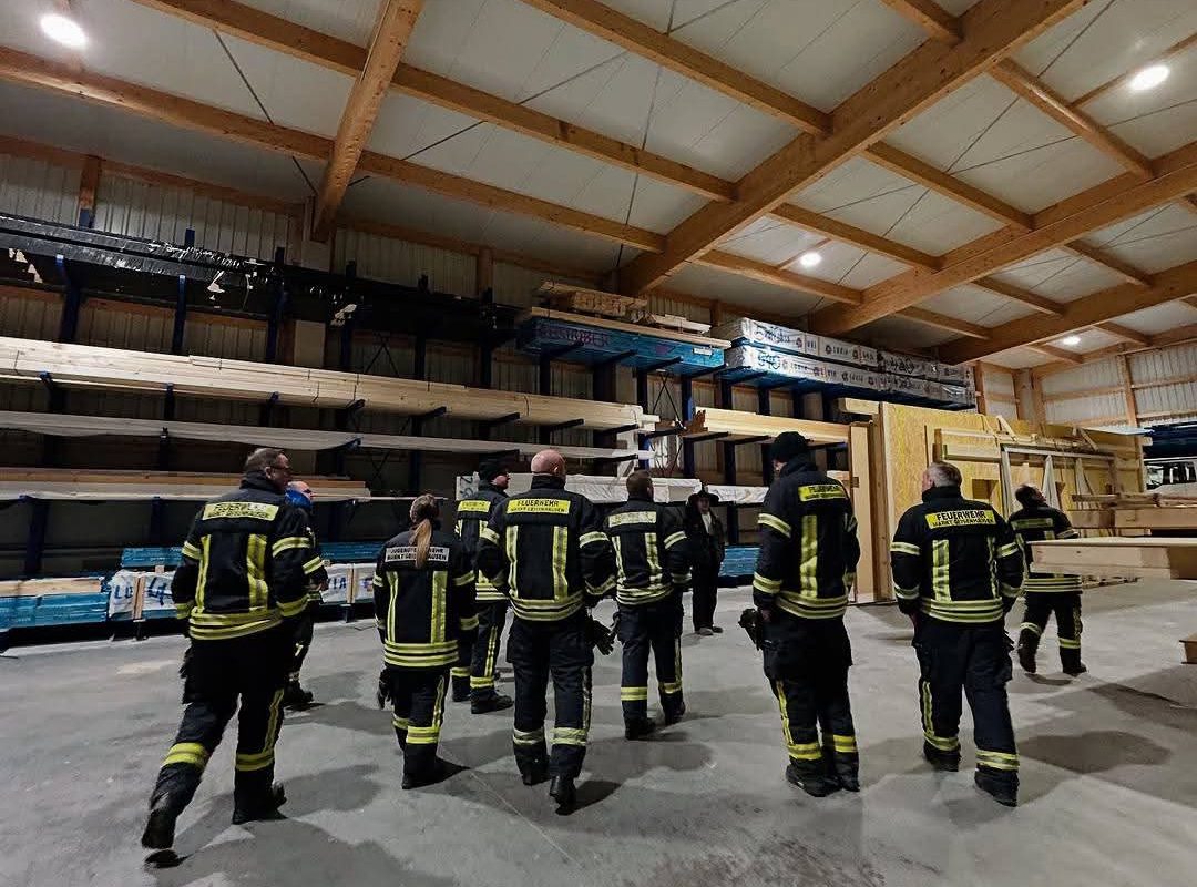 Im Rahmen der Ausbildung unserer Einsatzkräfte fand kürzlich ein Übungsabend in einem besonderen Umfeld statt. Am Donnerstag, den 06. Februar, besuchten wir die Zimmerei Vögl im Gewerbegebiet Geisenhausen, wo uns Josef Vögl herzlich empfang und durch die verschiedenen Bereiche des Unternehmens führte. Dabei wurden wir auf potenzielle Gefahrenquellen aufmerksam gemacht. In einer Zimmerei sind insbesondere die großen Holzlager und das beim Holzbearbeiten entstehende Sägemehl die größten Gefahren.