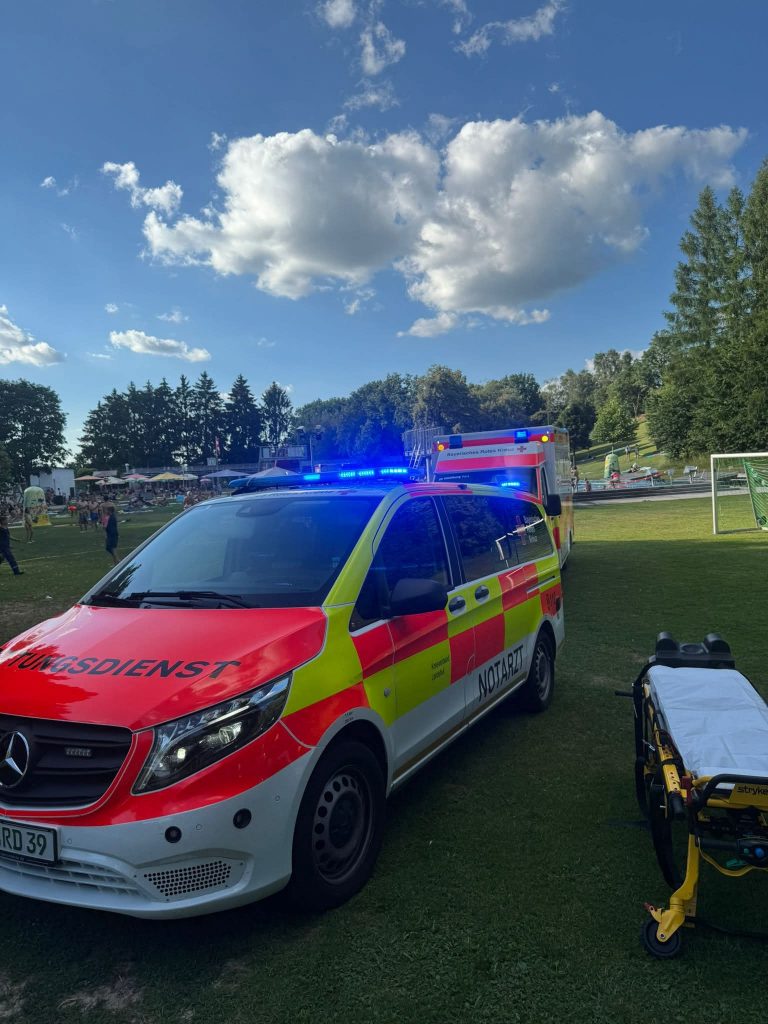 Bei Jugendkulturfestival im örtlichen Freibad kam es zu einem medizinischen Notfall. Die anwesenden Kräfte der FFW Markt Geisenhausen (Aktive Kameraden und Jugendfeuerwehr) übernahmen die Erstversorgung des 12 jährigen. Zusätzlich wurde mittels decken und Planen ein Sichtschutz errichtet und der eintreffende Rettungsdienst eingewiesen sowie bei seiner Arbeit unterstützt.