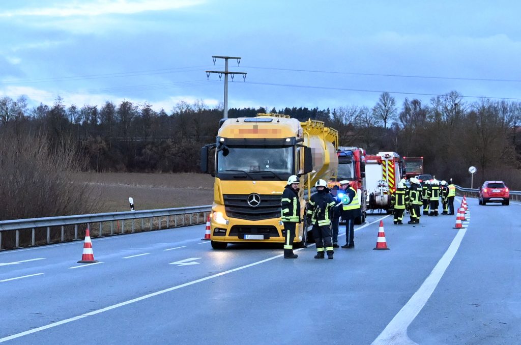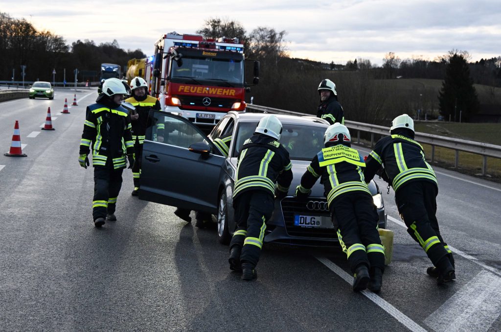 Aus derzeit unbekannten Gründen touchierte der Fahrer eines Audi einen Lastwagen welcher die Abfahrtspur nach Geisenhausen/Diemannskirchen befuhr und kam anschließend hinter diesem zum Stehen. Durch die Integrierte Leitstelle in Essenbach wurden die Feuerwehren Diemannskirchen und Geisenhausen auf die Bundesstraße alarmiert. Diese errichteten eine Verkehrsabsicherung und leiteten den morgendlichen Berufsverkehr an der Unfallstelle vorbei. Auch wurden auslaufende Betriebsstoffe gebunden. Beide Fahrer blieben unverletzt bei dem Verkehrsunfall. Nach der polizeilichen Unfallaufnahme konnte die Bundesstraße geräumt werden. Während der LKW noch von der Bundesstraße bewegt werden konnte, musste der VW abgeschleppt werden. Nach rund einer Stunde war die Bundesstraße wieder frei.