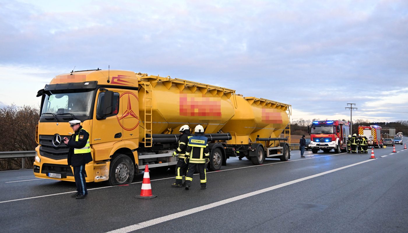 PKW touchiert LKW, B299, Geisenhausen, Lkr. Landshut, 13.02.2026 ca. 7.10 Uhr